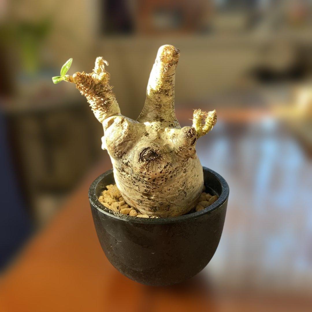パキポディウムグラキリスの現地株です。3年ほど国内管理の株になります。転勤で育成スペースを確保出来なくなったため出品します。サイズ、状態などは写真をご確認ください。陶器鉢との相性も良く部屋に飾ればグッと締まるインテリア性抜群の美形株と思います。根腐れ等もなく株はガチガチ、枝の選定を行なった箇所からも新芽(写真7枚目)が出てきました。陶器製の鉢・受皿付き。◉売り切りのため、多少の値引き対応可。コメントか値下げ交渉から連絡をお願いします。